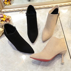 2018冬季马丁靴女细跟短靴女秋高跟猫跟裸靴尖头加绒踝靴女靴单鞋