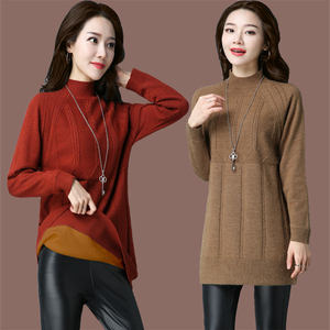 新款韩版女装秋冬中长款半高领加绒毛衣打底衫大码加厚针织羊绒衫