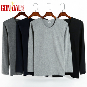 冠得贴身纯棉单件上衣男秋衣长袖圆领内穿薄款紧身保暖打底内衣衫