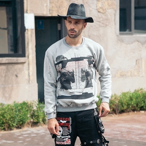 欧美高街潮牌嘻哈圆领卫衣男韩版潮学生宽松休闲潮流加绒潮男港风