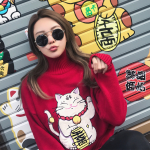 沫晗依美2017春秋韩版中长款半高领提花显瘦毛衣纯色套头针织衫