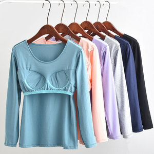 免穿文胸罩杯一体带胸垫打底衫内衣大码宽松纯棉秋衣长袖t恤女