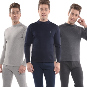 才子男士纯棉保暖内衣男士圆领秋冬修身简约秋衣秋裤内衣套装